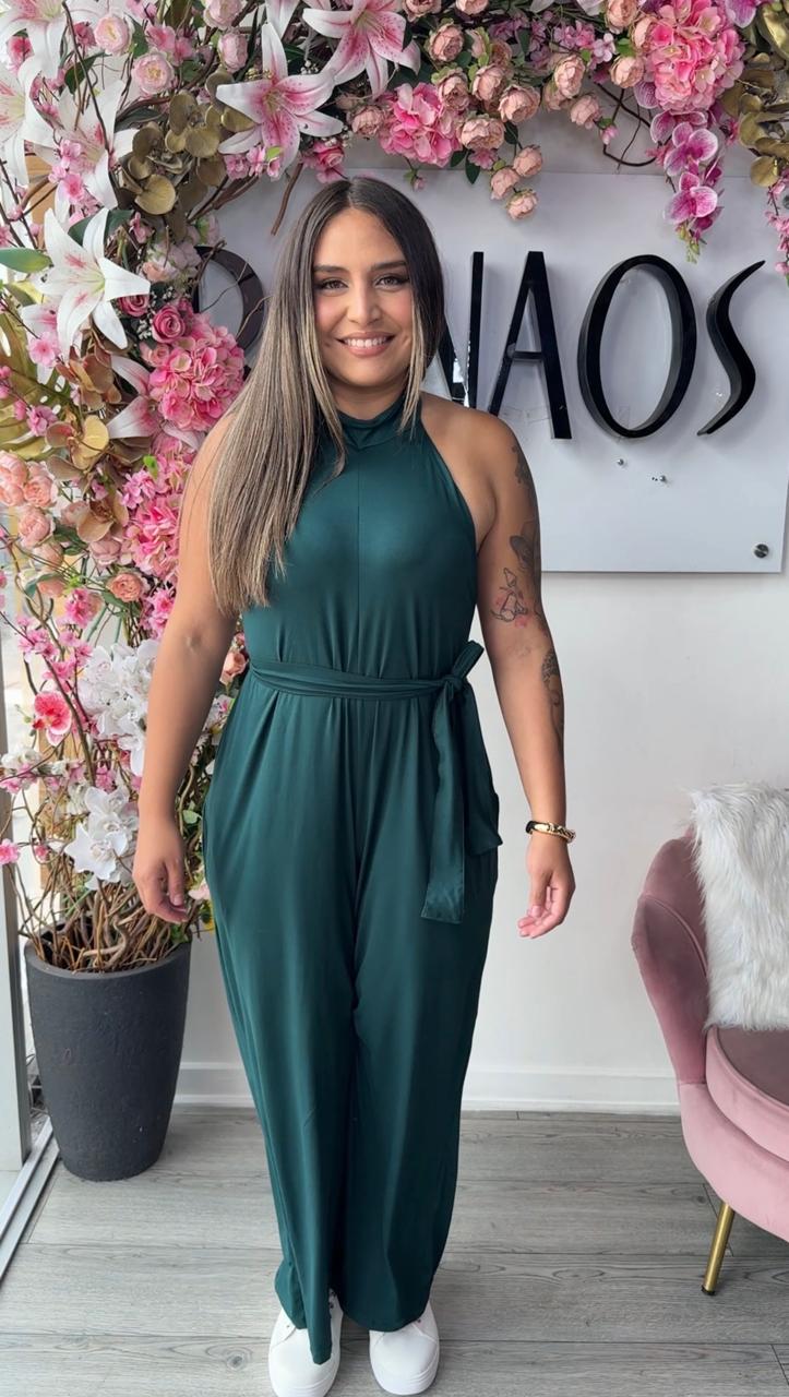 Su diseño fluido con cuello halter realza el cuello y los hombros, mientras que su espalda descubierta le da ese toque de sensualidad sutil que encanta.