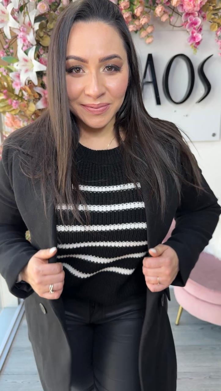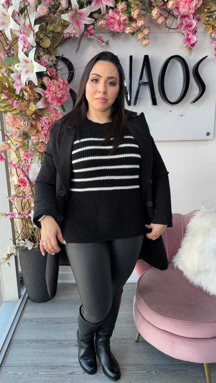 Hermoso sweater de líneas, practico y cómodo para combinar en otoño invierno. Pídelo y arma look donde te verás hermosas con prendas sencillas pero de excelente calidad.