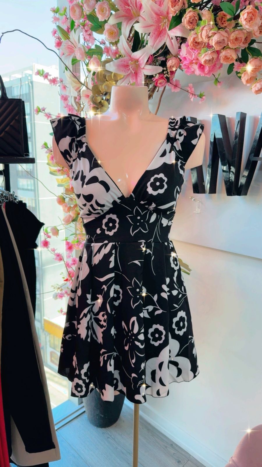 Vestido Short Diana - Estampados - Unica / Estampado - Negro con Flores Blancas